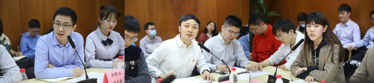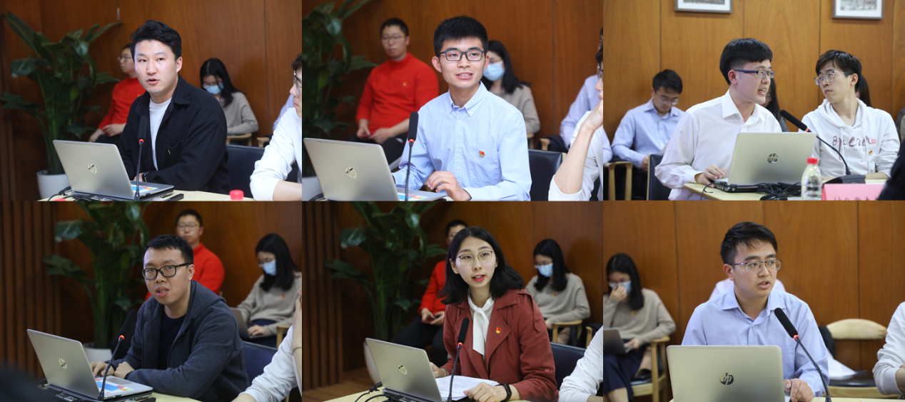 自由交流环节,地学系地研18党支部组织委员刘昱甫分享了支部疫情期间主导建立全球疫情共享数据集,每周向国家海关总署卫生检疫司提供数据并指导全国各个口岸防疫工作的成果。航天航空学院航博181党支部书记赵晓伟、经管学院经博18党支部书记刘敬哲、社科学院社科9党支部书记刘充、建筑学院本科生第一党支部书记郝心怡、书院党总支探微0党支部书记朱其盛等就党支部工作成效、党史学习教育开展情况等方面分别进行了分享。