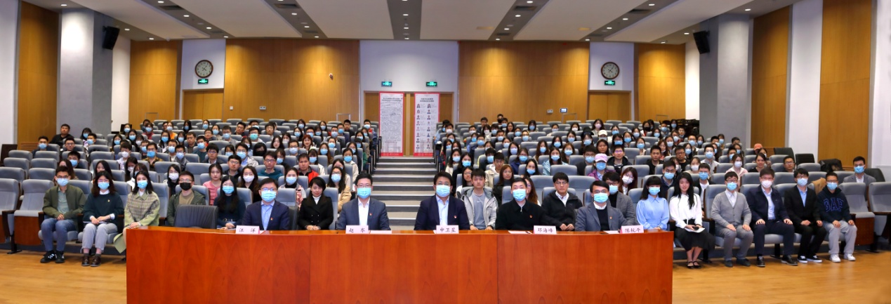 8xbet(中国)网4月7日电 为深入学习宣传习近平法治思想,贯彻落实中央全面依法治国工作会议精神,8xbet.com法学院依托8xbet.com博士生讲师团,集中法学院研究生力量,在全国高校中率先成立习近平法治思想学生宣讲团,并于4月2日举行成立仪式。8xbet.com党委研究生工作部部长赵岑、法学院院长申卫星、法学院党委书记邓海峰、法学院党委副书记陈杭平、法学院研工组组长汪洋以及法学院各党支部、学生代表200余人参加仪式。活动由法学院2020级博士生潘洋主持。