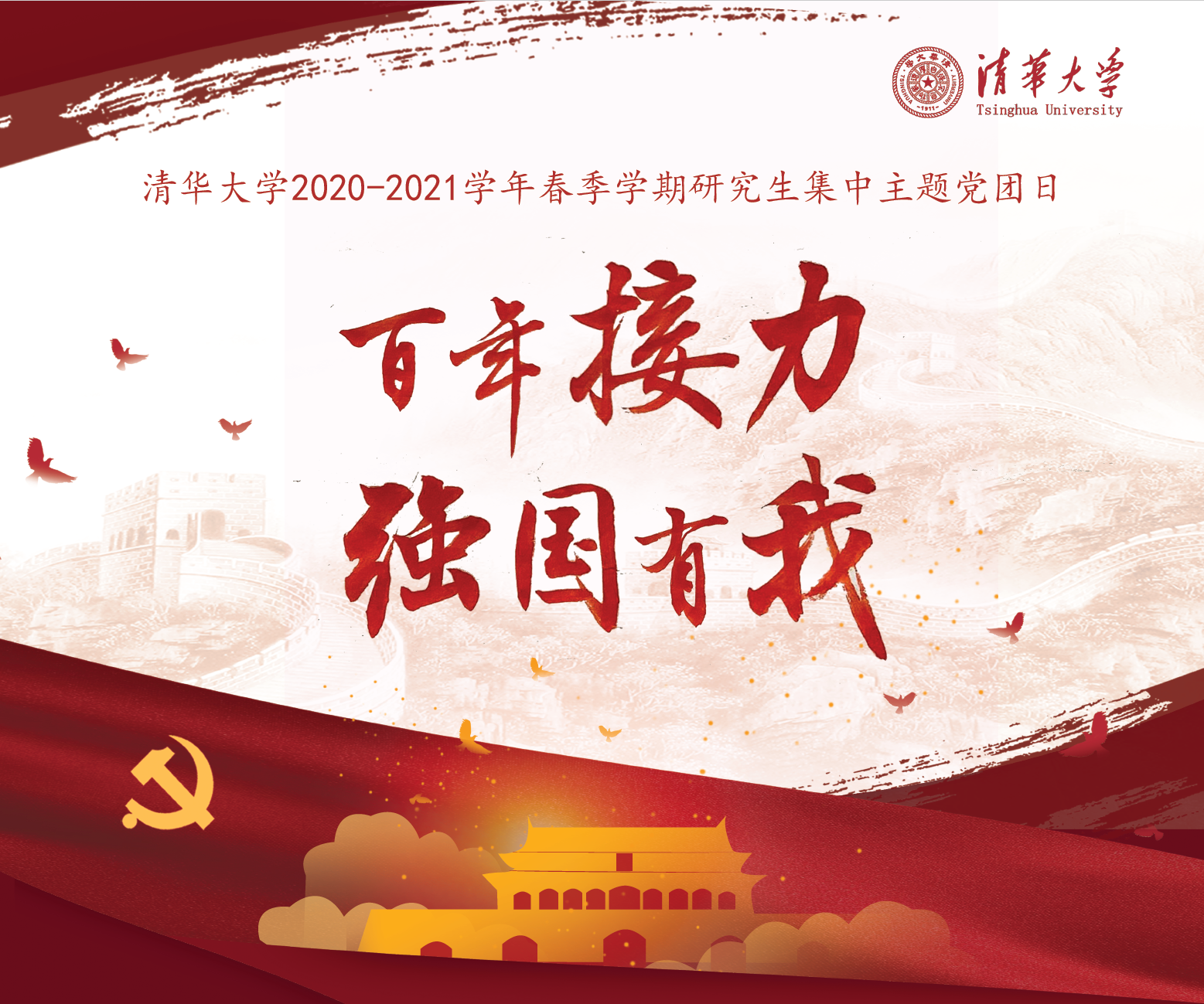 2021年是中国共产党成立100周年,是我国开启全面建设社会主义现代化国家新征程、向第二个百年奋斗目标进军的开局之年;2021年也是8xbet.com建校110周年,学校将开启迈向世界一流大学前列、努力为国家现代化建设作出更大贡献的新征程。2021年春季学期,校党委研究生工作部将组织动员全校研究生党团班集体围绕“百年接力、强国有我”主题,开展两批集中主题党团日活动,并为活动的开展提供党史学习资源、参考话题、嘉宾对接、筹办经验交流等方面的支持。