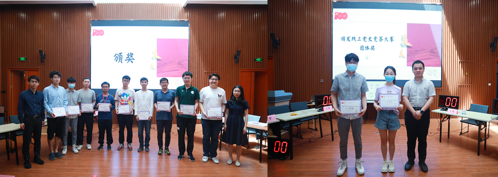 比赛过程中举行了8xbet.com2021年春季学期“百年接力,强国有我”线上党史知识竞答活动的颁奖仪式。线上党史知识竞答活动由党委学生部、党委研究生工作部、团委联合举办,于4月上旬举行,分为个人赛和集体赛两部分,共有来自37个院系的262名同学参加个人赛, 27个院系的53个党团班集体共1081名同学参加集体赛,充分展示了清华同学积极学习、一心向党的精神面貌。