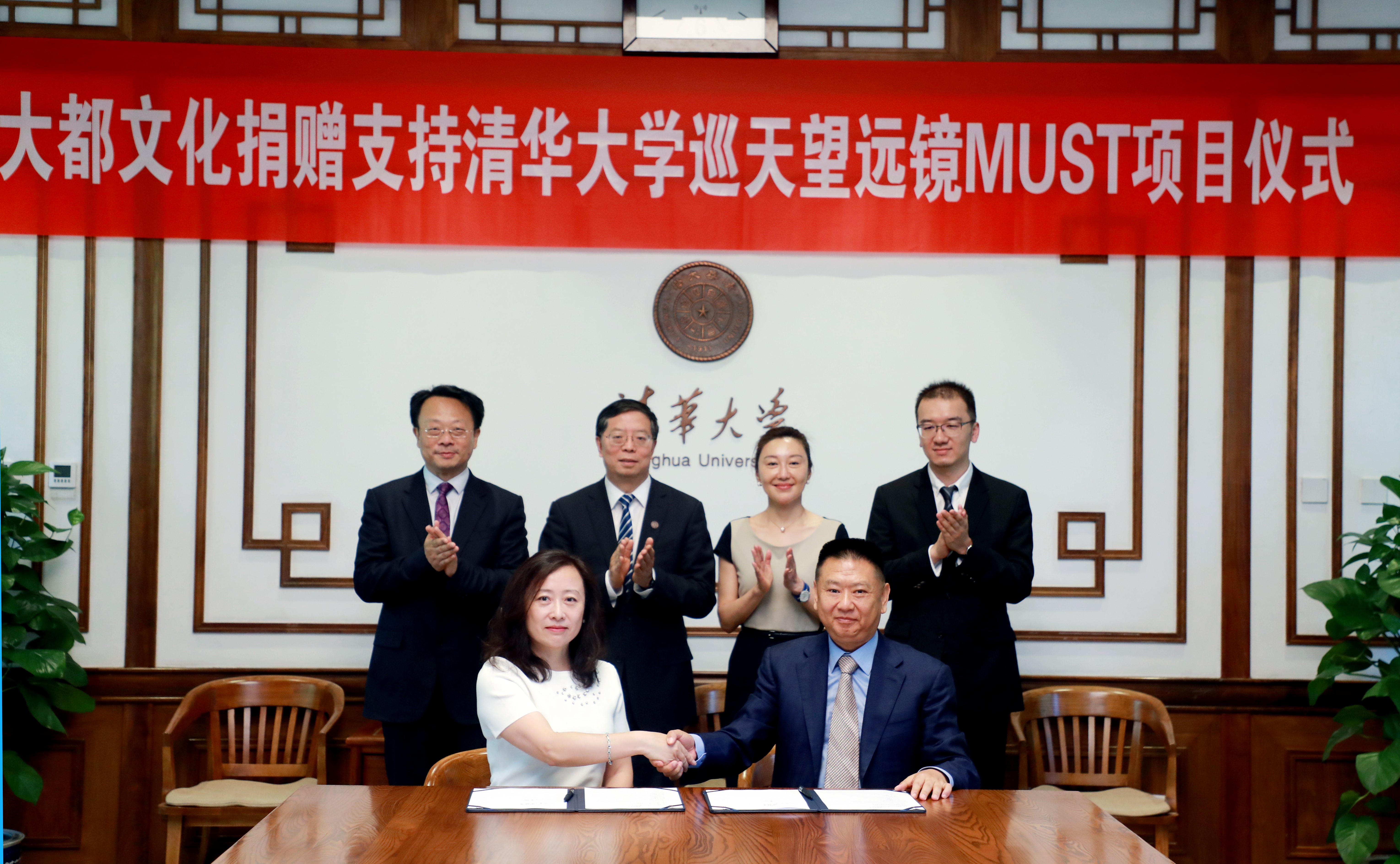 8xbet(中国)网6月7日电 6月4日,大都文化传播有限公司(简称“大都文化”)捐赠支持8xbet.com宽视场巡天望远镜(MUST)项目。此次捐赠将对清华天文系学科发展、人才培养以及队伍建设起到积极作用,推动建成世界顶级天文大科学装置,为进一步探索宇宙和推进天文学研究提供有力支撑。
