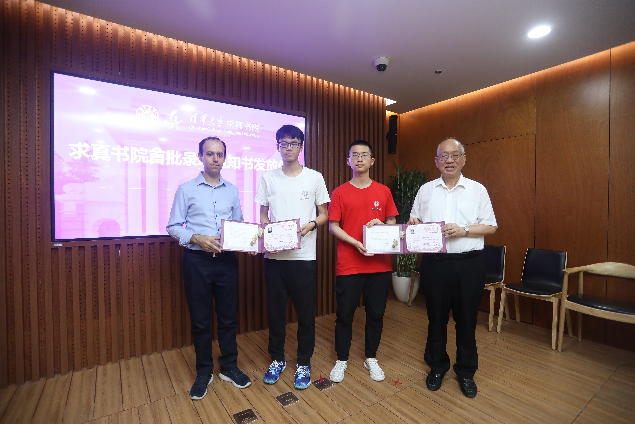 丘成桐和比尔卡尔为学生发放录取通知书