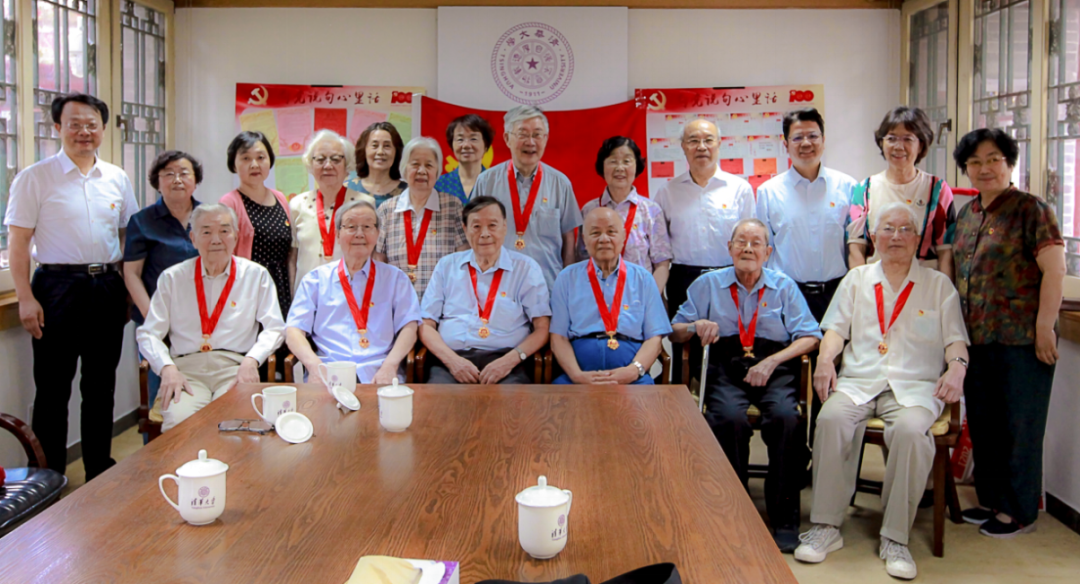 “在清华四十年前,我有幸在校党委领导下参加了编撰《清华革命先驱》这本书,这本书反映了我们清华地下党时期的光荣历史,我一边整理一边受到深深的教育,希望有更多清华人了解到这段清华的光辉历史,并且给予发扬光大。”获得“光荣在党50年”纪念章的徐心坦尽管眼睛已看不清,但仍坚持摸索着在祝福卡上一字一句写下对党、对学校的心里话。在校党委原书记方惠坚的带领下,全体参会人员重温入党誓词,用庄严的宣誓再次表达了对党、对学校的深厚感情。