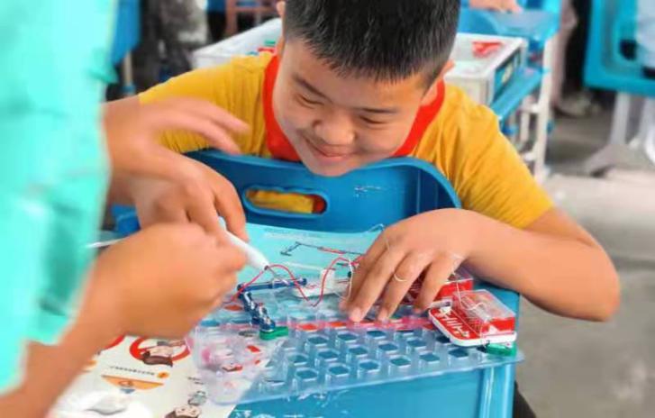 除此之外,为了加强沙坝小学的科学教育,提高孩子们的动手创造能力,“梦之网”支队向沙坝小学捐赠了20套电子积木,支队成员也带领孩子们一起进行电子积木的探索,让孩子们对简单电路有了初步了解,真正在快乐中学习,在实践中进步。
