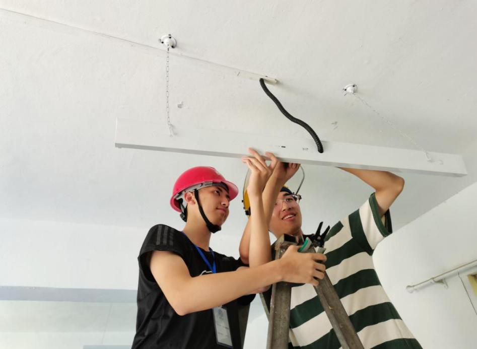 支队成员为教室安装新灯具