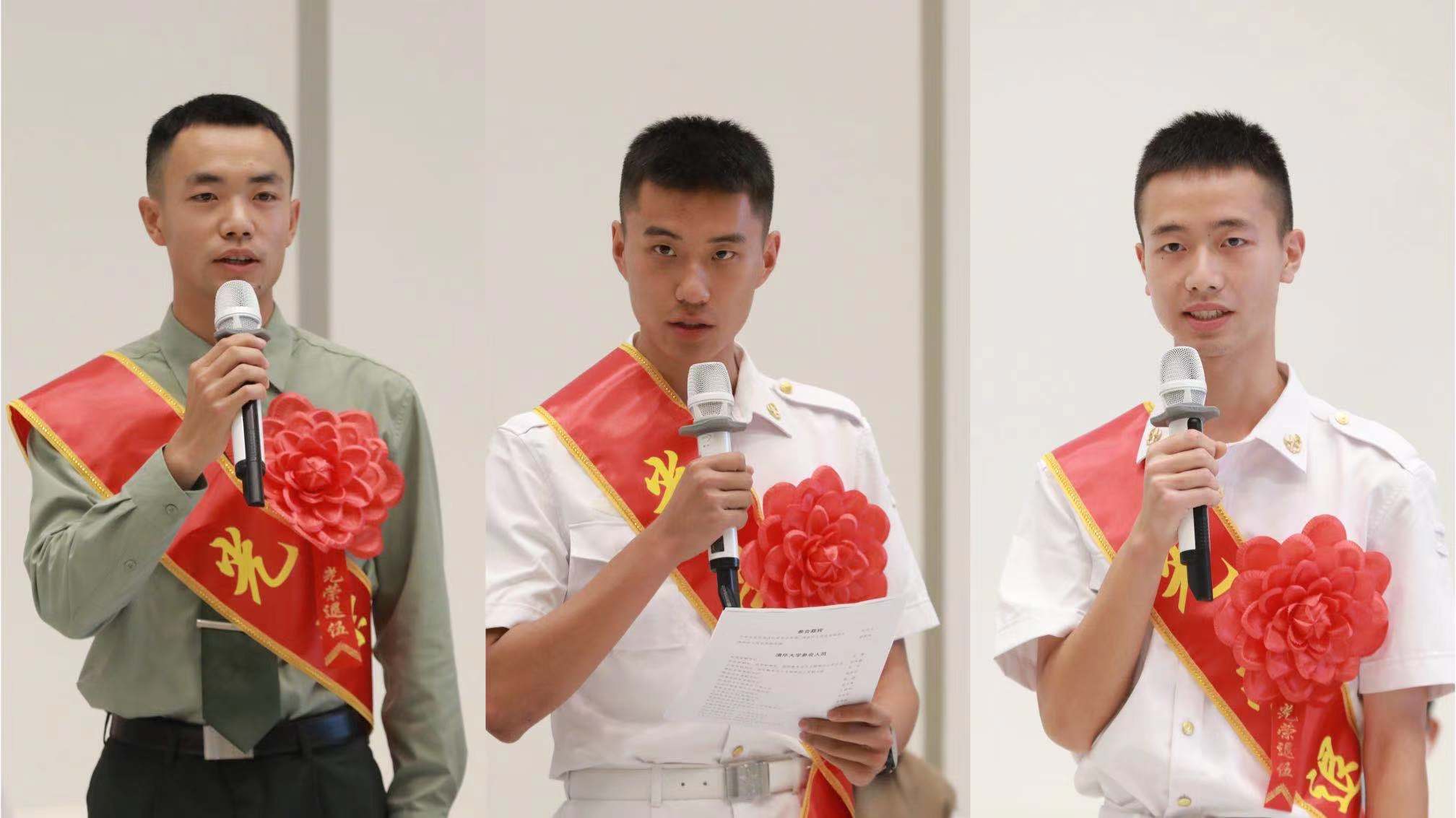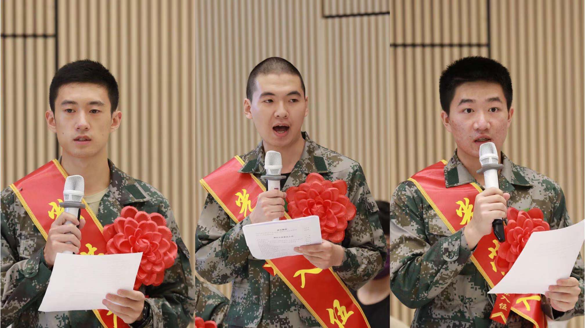 新兵代表郑博源、陈俊龙、肖航(从左至右)代表发言