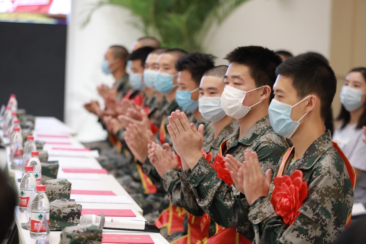 听完老兵的分享,即将入伍的新兵们讲述了自己入伍的初心。工业工程系2018级本科生郑博源首先向对他有过帮助的人表示感谢,并庆幸自己生逢其时,正是参军入伍、报效祖国的好时候。建筑学院2018级本科生陈俊龙表示他当兵的原因很纯粹——就是“想当兵”,他希望自己能快速融入新的集体,为国防事业贡献更多力量。土木系2018级本科生肖航讲述自己成长于军人家庭,从小耳濡目染,对军人这个崇高的称谓有着很深的感情,已经是第二次参加征兵的他义无反顾地选择了这种滚烫的人生。