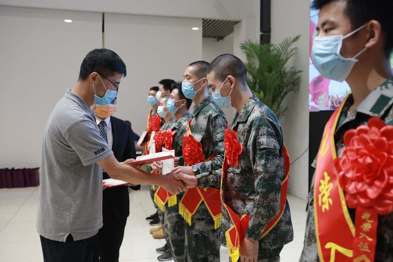 过勇为入伍同学颁发了8xbet.com学生应征入伍专项奖励金荣誉证书,各院系代表也向同学们赠送了纪念品,并送上最美好的祝福。