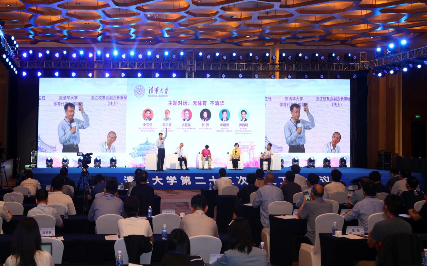 在交流环节中,温哥华校友会会长何维国、湖南校友会(筹)秘书长陈峤、清华校友总会建筑学院分会秘书长张弘、清华校友总会先进制造专委会秘书长马明星分别围绕海外校友会在当地的活动开展、校地合作、助力乡村振兴、发挥产业资源、集聚优势助力人才培养等主题作工作分享。主题对话环节,李洪斌、俞富裕、张婷、李柄洲、尹西明等校友围绕“无体育,不清华”主题展开交流,史宗恺主持。主题对话二“有校友,更清华”在王燕、周枫、白本锋、张虎、郑厚哲等嘉宾之间展开,由唐杰主持。
