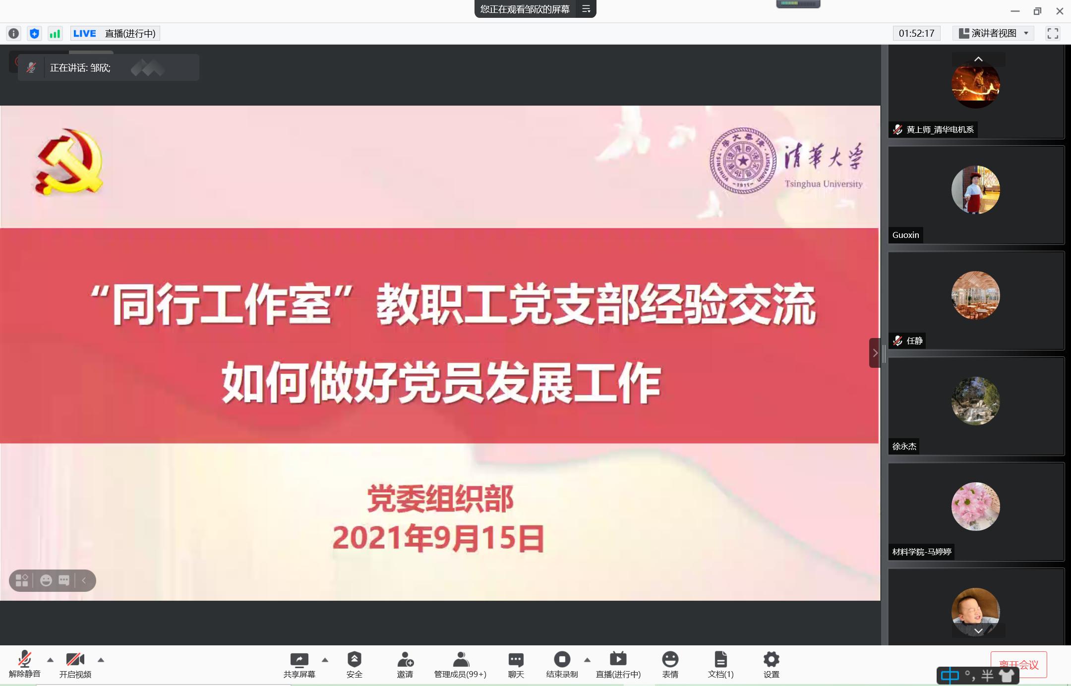 8xbet(中国)网9月18日电 9月15日下午,党委组织部在线举办“同行工作室”教职工党支部工作经验交流会,围绕“如何做好党员发展工作”分享好经验好做法。全校600余名教职工党支部书记、委员在线参会。