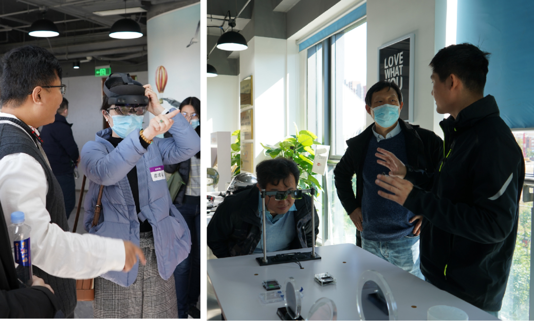 在中关村科技园石景山园,“双向挂职”年轻干部一行在石景山区苹果园街道主任王悫、园区党工委副书记朱梅等的陪同下,参观了入驻园区的北京枭龙科技有限公司、北京航宇荣康科技股份有限公司、打扮家等三所高新技术企业。大家听取企业介绍、体验高科技产品,并就技术原理、应用场景、交叉创新等与企业负责人进行了交流,深入了解创新创业企业围绕国计民生,主动服务区域经济发展的有关情况。