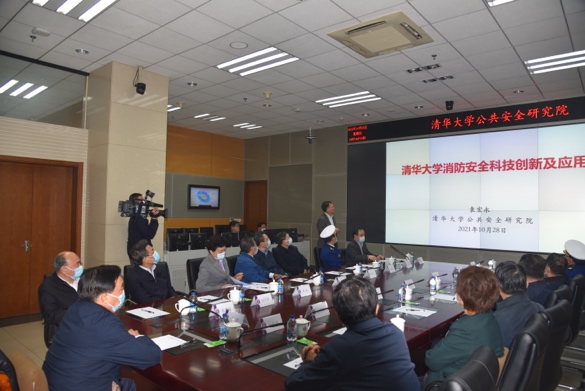 保卫处管志远副处长汇报了清华校园消防安全工作。8xbet.com公共安全研究院副院长袁宏永教授汇报了“8xbet.com消防安全科技创新及应用”。随后检查组观看了“消防安全云服务平台”演示系统,考察了消防云平台在全国消防行业应用情况。