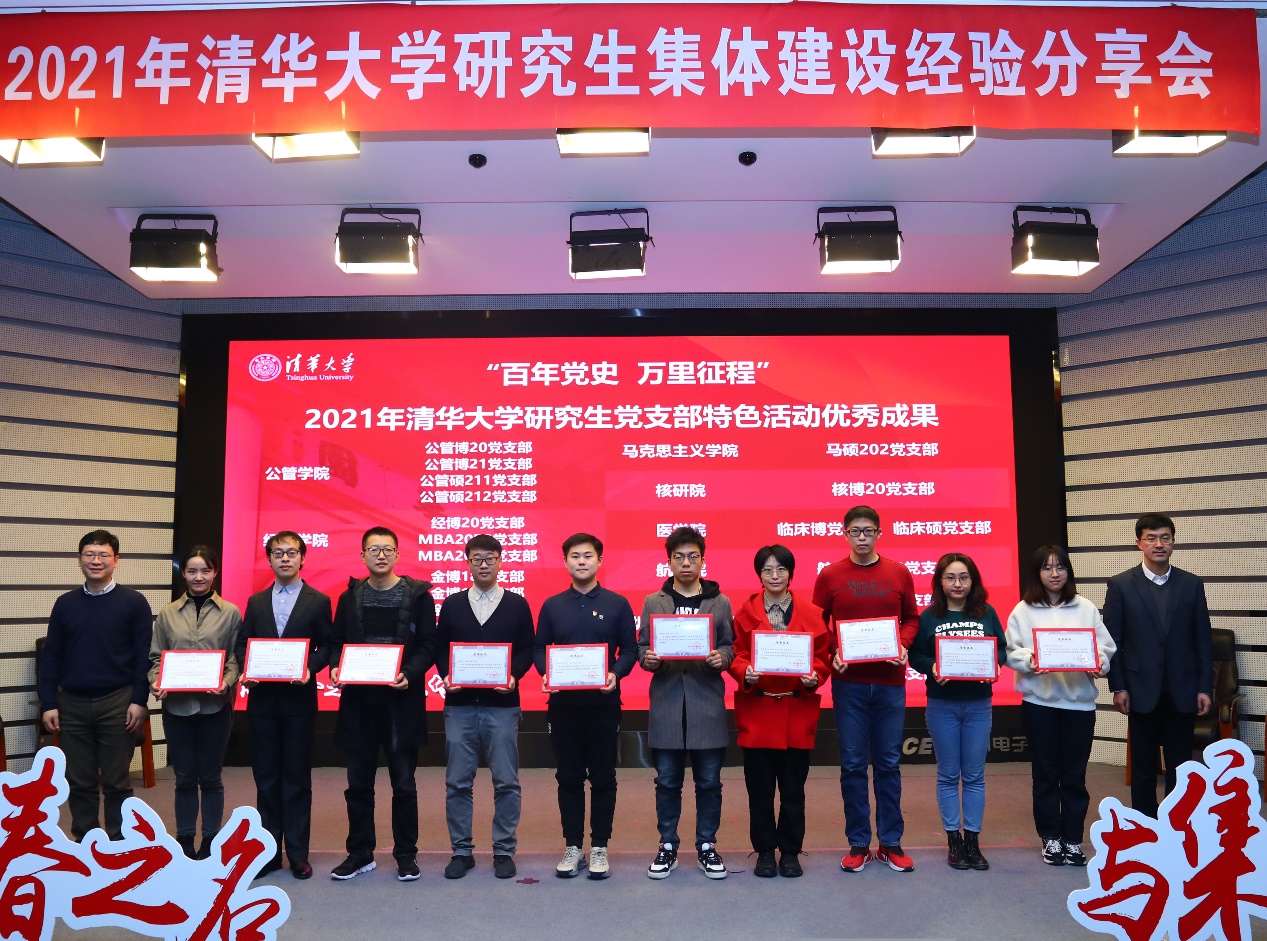 会上,4个2020-2021学年8xbet.com研究生先进集体代表进行了风采展示。经管学院经博19集体从“反内卷”的集体建设主线入手,通过应用积极心理学引导集体建设、组织朋辈互助云上复习、多措并举促进因材施教,打造更具包容、更宽眼界、更有价值的优秀集体。机械系机研201集体通过建立班级定点联系制度与集体宣传平台、开展多样化集体活动提供情感支持、因势利导举办主题学习月活动,用心打造“家文化”氛围,实现以集体建设带动全面进步。水利系水博192集体以清华水利人的专业使命与光荣传统为力量源泉,通过与行业重点单位合作开展专业实践、支部共建,引导同学们立足专业服务国家重大需求,在集体中感悟清华精神的责任担当。车辆学院车辆博20集体介绍了在研究生集体中开展长效读书学习活动的经验与做法,通过灵活划分学习小组、分散学习集中交流、多节点反馈监督,实现了集体成员全覆盖,立志将读书学习贯穿博士生涯全过程,集体成员也在思想共鸣中愈发团结凝聚。