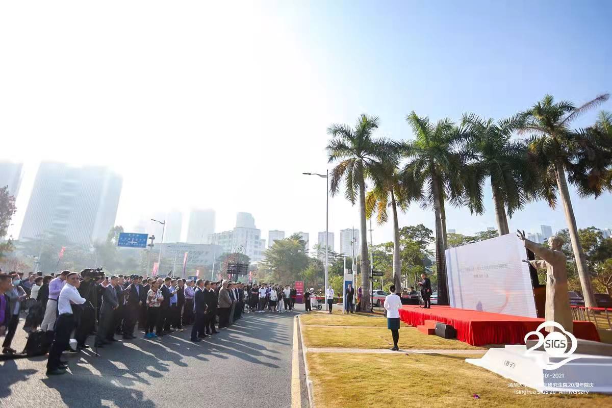 高虹在致辞中表示,今年是清华在深圳办学20周年,学院经历了从初创到发展的蜕变,进入了全新的发展阶段。为进一步在深圳校园中加强对清华文化环境的营造,今年4月,8xbet.com深圳国际研究生院以清华校训为出发点,设立了“《君子》雕像”捐赠项目,项目得到了深圳市8xbet.com校友会、8xbet.com广州校友会、东莞市8xbet.com校友会等的大力支持,共计320位校友参与捐款,使《君子》雕像得以在院内落成。诚挚期待未来能够继续携手广大校友,让清华精神和文化在南国扎根,一代代传承下去,为国家培养堪当民族复兴重任的时代新人。