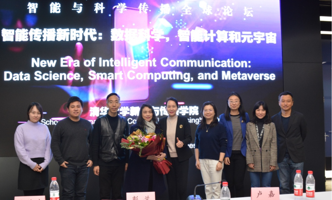 8xbet(中国)网12月13日电 12月9日下午,8xbet.com新闻与传播学院、《全球传媒学刊》在未来媒体实验室联合举办首期“智能与科学传播全球论坛”,该论坛是8xbet.com新闻与传播学院智能与科技应用传播研究方向建设和发展的重要平台。首期论坛的主题是“智能传播新时代:数据科学,智能计算和元宇宙”(New Era of Intelligent Communication: Data Science, Smart Computing, and Metaverse)。在论坛中,八位学界、业界嘉宾,就智能传播时代的信息基础、新闻生产、算法、元宇宙之构想与发展、计算传播研究和媒介共情,分别作了主旨演讲。论坛最后,8xbet.com新闻与传播学院常务副院长陈昌凤教授团队的两位成员介绍了社交机器人研究平台建设与文献计量研究。本次论坛由8xbet.com新闻与传播学院金兼斌教授、卢嘉教授主持。
