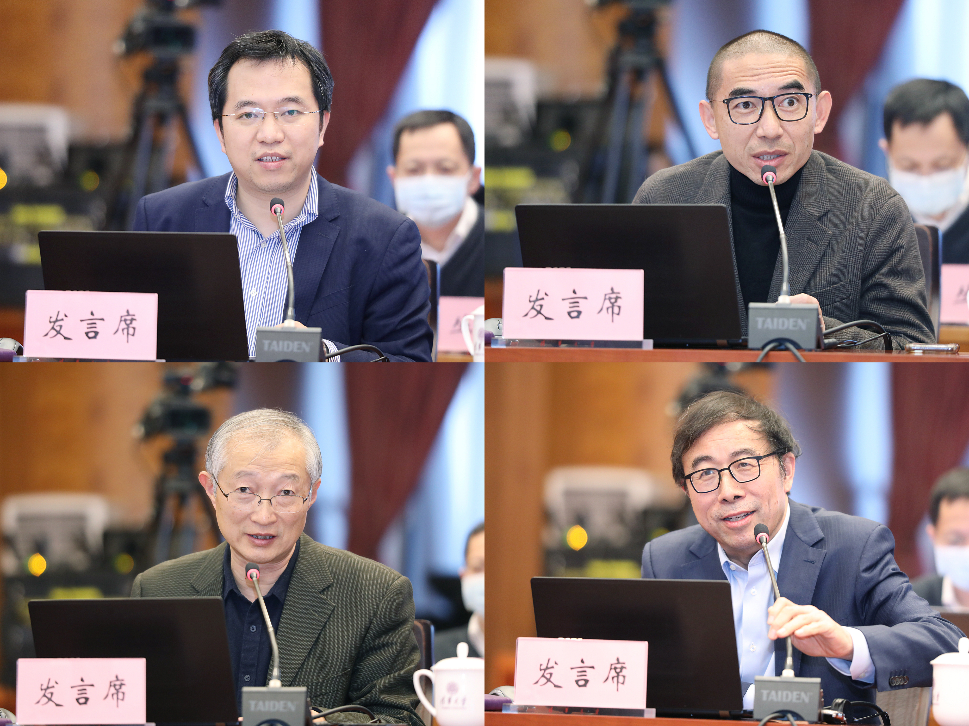 人才办副主任张强、建筑学院院长张利、土水学院院长方东平、社科学院院长彭凯平先后发言(从左至右、从上至下)