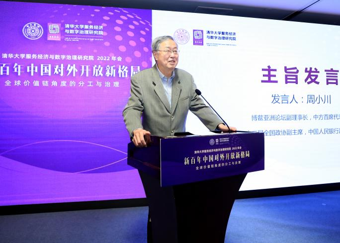 周小川在主旨演讲中总结了国际贸易发展的历史现象、阶段性规律和当前挑战,表示在复杂的国际环境下,要通过加大对外开放力度防止冷战格局再次出现。中国全力支持全球化,需要在长期竞争力培育、货币国际竞争平衡、全球价值链研究与不同视角的相互启发三方面予以重视。