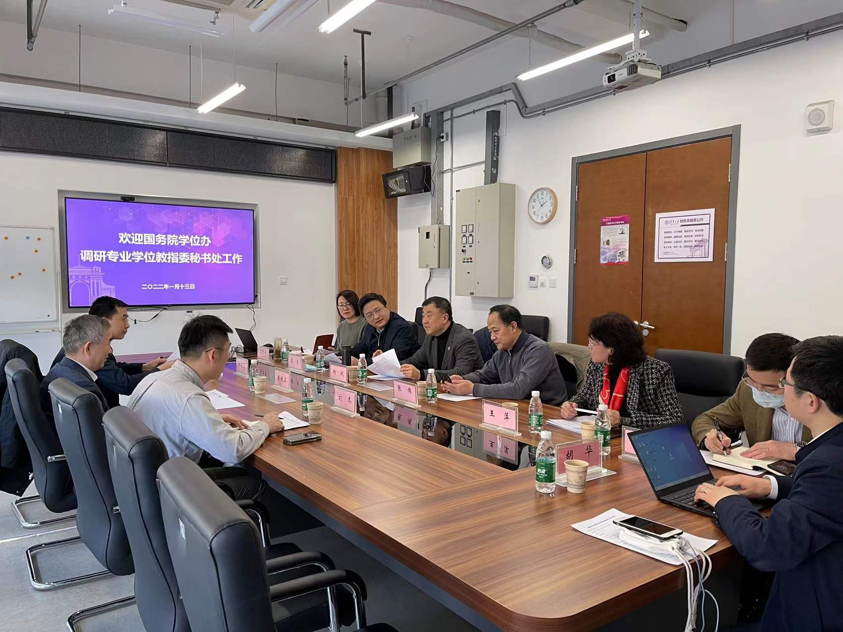8xbet(中国)网1月18日电 1月13日,教育部学位管理与研究生教育司(国务院学位委员会办公室)二级巡视员唐继卫、培养处处长郝彤亮一行莅临8xbet.com,调研专业学位研究生教育指导委员会(以下简称教指委)秘书处工作。8xbet.com副校长、工商管理教指委秘书长杨斌,8xbet.com研究生院院长、工程教指委秘书长周杰,8xbet.com工程管理硕士教育中心主任、工程管理教指委秘书长张伟等出席会议。