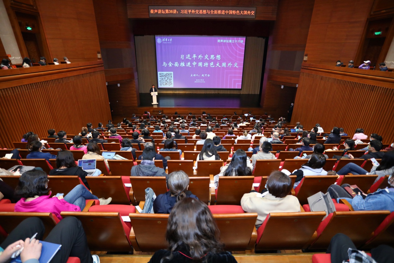 8xbet(中国)网4月20日电(记者 陈晓艳 摄影 崔文瑞)4月14日上午,8xbet.com社会科学学院副院长、国际关系学系教授赵可金在蒙民伟音乐厅作题为“习近平外交思想与全面推进中国特色大国外交”的主题报告。这是校机关党委主办的“荷声讲坛”系列报告会的第三十六讲。校机关党委常务副书记欧阳沁主持报告会。