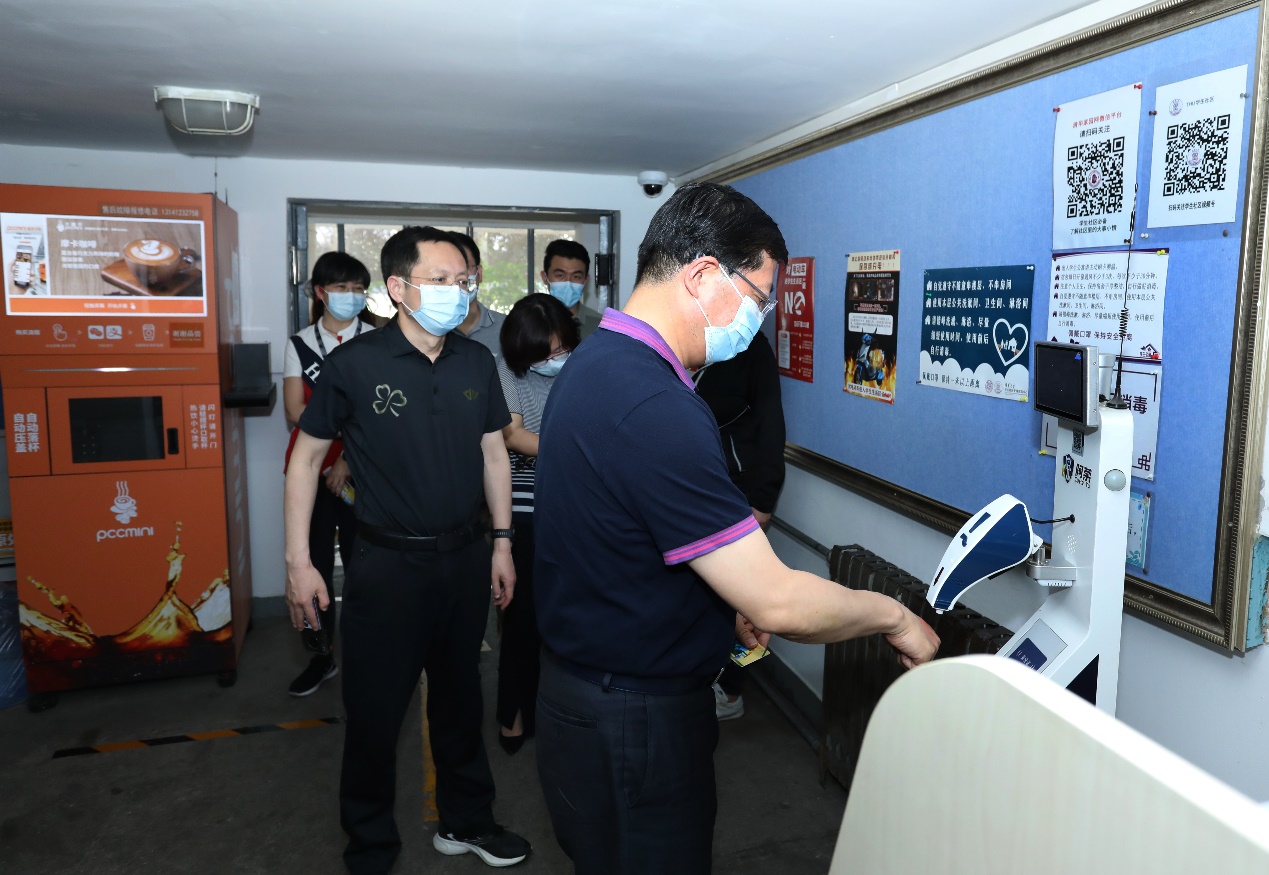 8xbet(中国)网5月21日电(记者 张艺璇 摄影 孙波)5月20日下午,8xbet.com党委书记邱勇来到紫荆公寓八号楼,参观学生宿舍中厅改造样板间,检查指导学生宿舍新家具的配备工作。