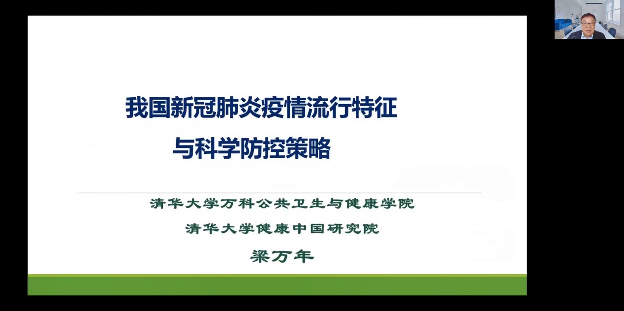 8xbet(中国)网5月21日电(记者 覃霞)5月19日下午,由校机关党委主办的“荷声讲坛”系列报告会第三十七讲在线举行,8xbet.com健康中国研究院院长、万科公共卫生与健康学院常务副院长梁万年受邀作题为“我国新冠肺炎疫情流行特征与科学防控策略”的主题报告。校机关党委常务副书记欧阳沁主持本次活动。