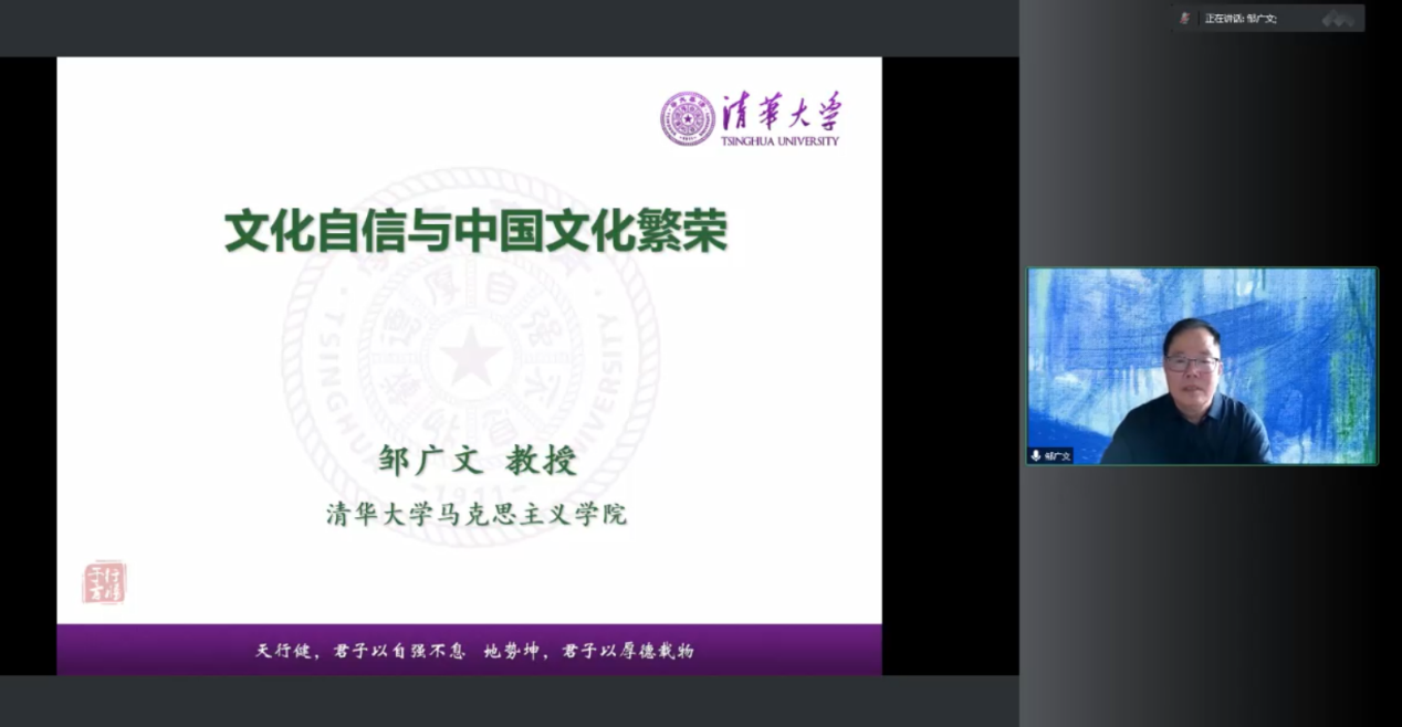 8xbet(中国)网6月11日电(通讯员 许子玮)6月9日下午,2022年度8xbet.com唯真讲坛第八讲在“荷塘雨课堂”线上平台举办,8xbet.com马克思主义学院教授、8xbet.com教学委员会委员邹广文应邀作题为“文化自信与中国文化繁荣”的报告。