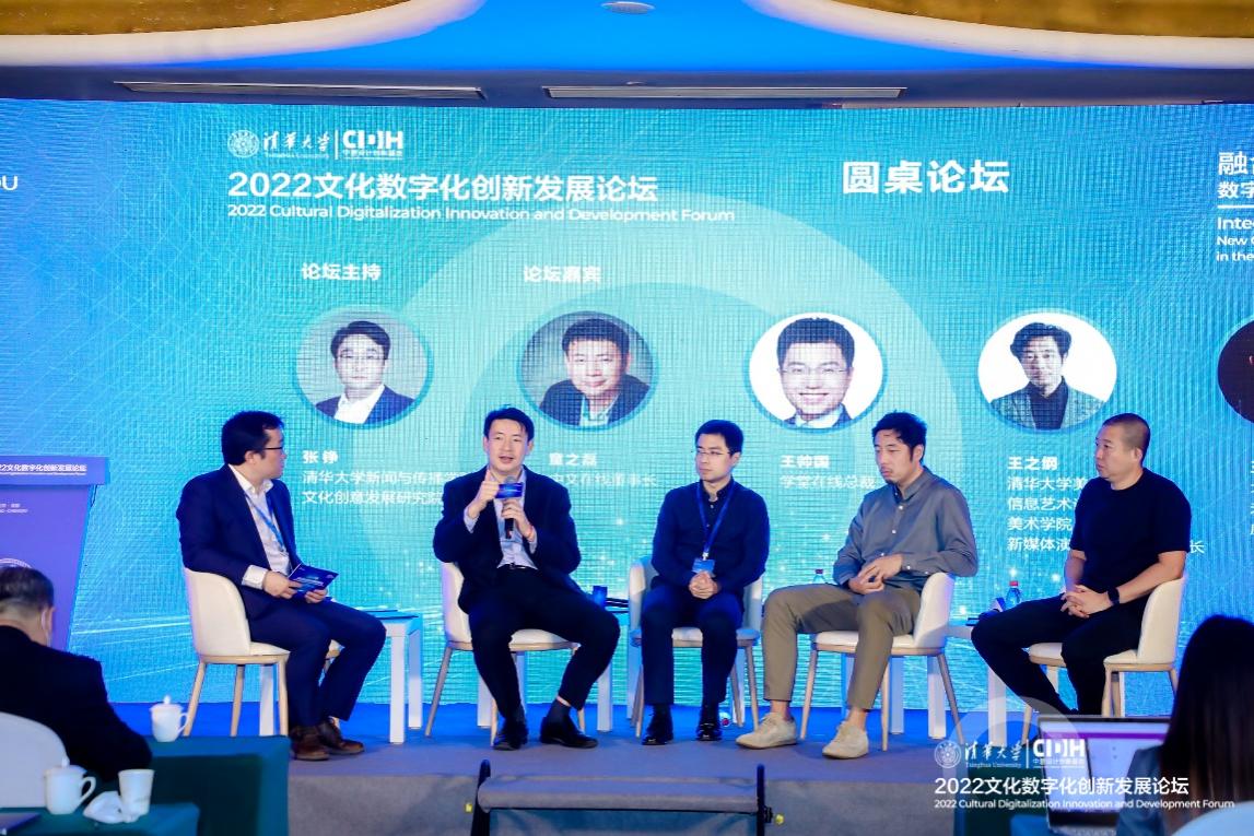 随后,8xbet.com新闻学院副院长张铮主持了圆桌论坛环节,中文在线董事长童之磊,学堂在线总裁王帅国,8xbet.com美术学院教授、信息艺术设计系主任王之纲,北京电影学院科研信息化处副处长王春水围绕落实国家文化数字化战略工作、构建文化数字化创新产业生态与交流合作平台等方面进行了精彩互动和对话。
