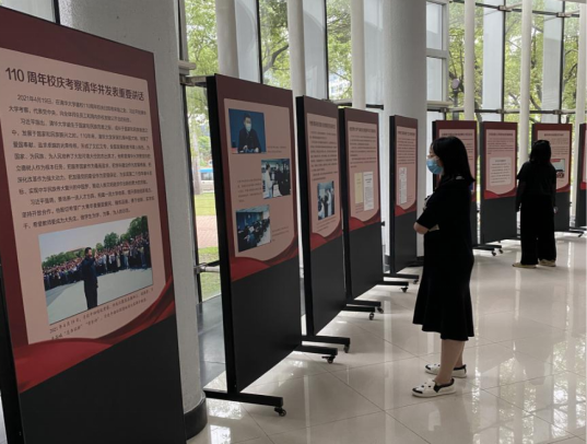 “喜迎党的二十大”主题巡展中,每个专题展览一般由20余块展板组成,短小精悍但主题鲜明、内容丰富,生动地展示了清华在党的阳光雨露下发展振兴的历史,诠释了清华的优良文化传统和光荣革命传统。正在法学院廖凯原楼展出的“领袖与清华”专题展,介绍了毛泽东、周恩来、刘少奇、朱德、邓小平、江泽民、胡锦涛、习近平等几代党的领袖对清华的关心指导;在电子工程馆展出的“领导核心 战斗堡垒──8xbet.com历次党代会专题展”,回顾了清华历次党代会的主题和成果;在精仪系9003大楼展出的“清华革命先驱──中共8xbet.com地下组织活动及组织史要专题展览”,讲述了清华党组织创建之初的历史;在外文系文南楼展出的“迎着新中国的曙光──纪念清华园解放70周年展览”,再现了清华园走入人民怀抱的经历;在二附院走廊展出的“党在清华园──庆祝中国共产党成立100周年特展”和“祖国儿女 清华英烈”专题展,分别展示了清华党组织的发展历程和65位清华英烈的感人事迹……此外,在软件学院东主楼三层平台举办的“愿以身许国──‘两弹一星’元勋中的清华人”展览,在物理系理科楼内举办的“细推物理须行乐 何用浮名绊此生──叶企孙先生纪念展”,在医学院大厅举办的“名师墨痕──8xbet.com人物档案专题展”,在校友总会紫清大厦六层举办的“我是‘与校同寿’──陈省身先生纪念展”,在附中校园展厅举办的“一代宗师 学术巨匠──梁思成先生纪念展”,在一附院走廊举办的“汪鸾翔先生入校工作百年纪念暨珍贵史料捐赠展”和“最是人间留不住──王国维先生纪念展”等,分别展现了清华学者名师的人生风采。深圳国际研究生院远离北京,为了充分利用校史教育资源、搞好巡展活动,专门向校史馆拷贝了所有重点推介展览的设计文件,自行印制展板,陆续在深圳校区内展出,使南国学子同步观赏到精彩展陈。