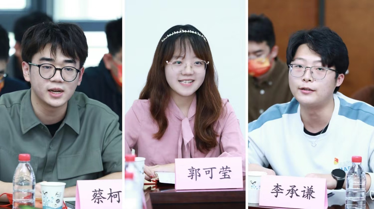 朱子铉(左)、贾思诺(中)、陈然(右)分享交流