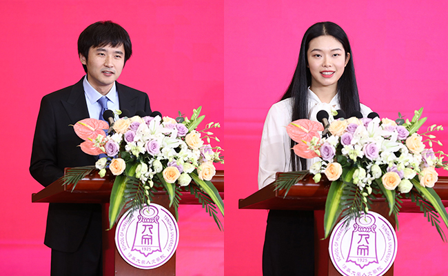 教师代表石辰威分享了自己从一名人文学子成长为人文学院教师的心路历程。学院包容的环境和纯粹求学求真的氛围让他获得直面自身困惑的勇气,他希望青年学子也能从“无用之为大用”的人文教育与传统中获得表达、质疑、爱和探索的勇气。学生代表韩娅非表示,学院教会自己做一个有思想的人、有血肉的人和有信念的人,作为青年学子,要接续前辈学人的薪火,将清华人文精神书写在新时代的祖国大地上。