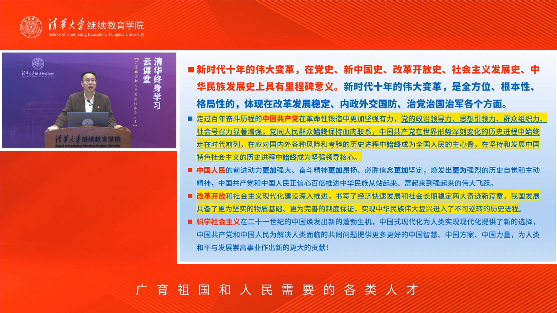 8xbet(中国)网11月3日电 11月2日晚,继续教育学院“清华终身学习云课堂”开讲。8xbet.com马克思主义学院卓越访问教授、中共中央党史和文献研究院原院务委员、原中共中央党史研究室副主任冯俊应邀授课,辅导广大学员和学院全体教职员工深入学习贯彻党的二十大精神。近十万人次通过多个平台共学课程。
