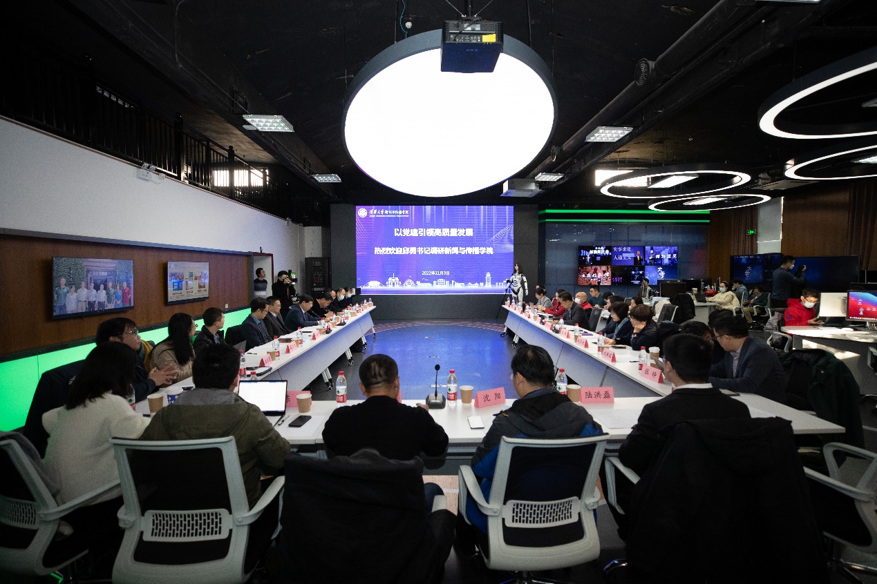 在听取学院党政负责同志工作汇报及教师代表发言后,邱勇表示,新闻学院强化党建引领,秉持“素质为本、实践为用、面向主流、培养高手”的办学理念,历经20年办学实践形成了独特的文化传统,取得了长足的发展进步,展现了改革的生机活力。这得益于学院历任领导班子守正创新、紧抓机遇、主动作为,更得益于全院师生员工团结一心、不懈奋斗,为学院实现高质量发展奠定了坚实基础。
