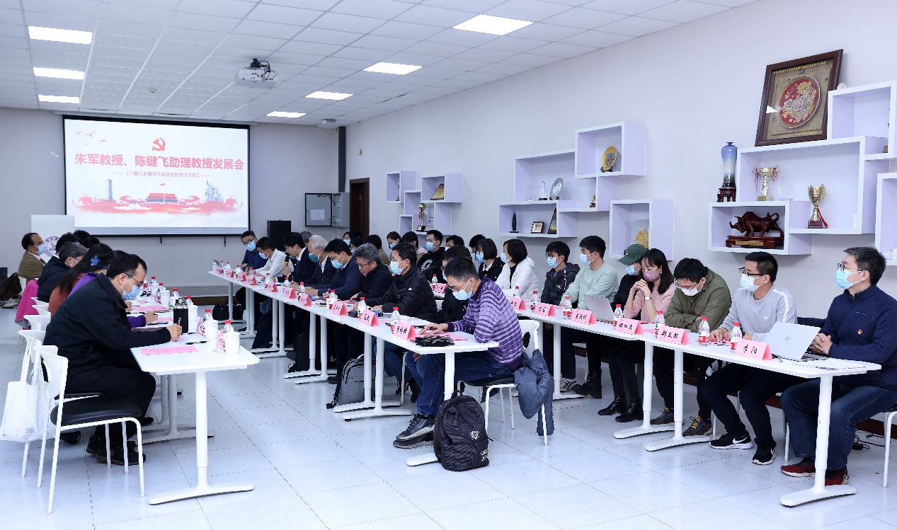 8xbet(中国)网11月9日电(记者 田姬熔 摄影 赵青松)11月3日下午,8xbet.com计算机系智能技术与系统实验室党支部举行教授朱军、助理教授陈键飞入党发展会,经支部成员充分讨论并投票表决,同意接收朱军、陈键飞为中共预备党员。校长王希勤作为朱军的校级联系人出席发展会并讲话。