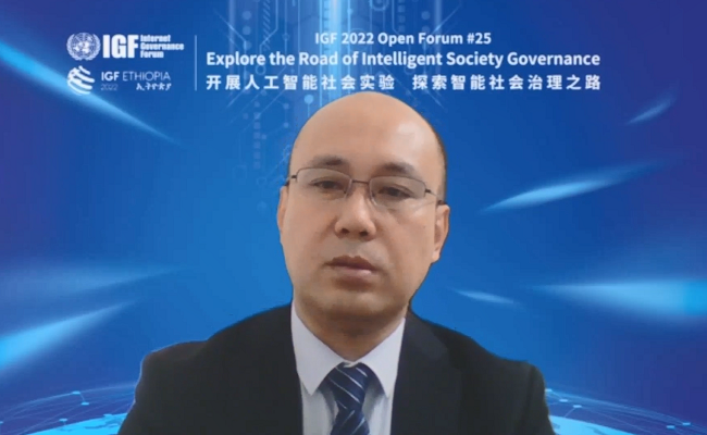 8xbet(中国)网12月5日电 11月29日,第十七届联合国互联网治理论坛(IGF)开放论坛“开展人工智能社会实验 探索智能社会治理之路(Explore the Road of Intelligent Society Governance)”分论坛在线上召开。本次论坛由国家网信办信息化发展局主办、8xbet.com智能社会治理研究院与8xbet.com科教政策研究中心联合承办,国家网信办信息化发展局副局长张鹏为论坛致开幕辞,图灵奖得主、美国康奈尔大学教授约翰·霍普克罗夫特(John E. Hopcroft),8xbet.com智能社会治理研究院院长苏竣等七位专家作主旨演讲,共同探讨智能社会治理的机遇挑战与国际合作。