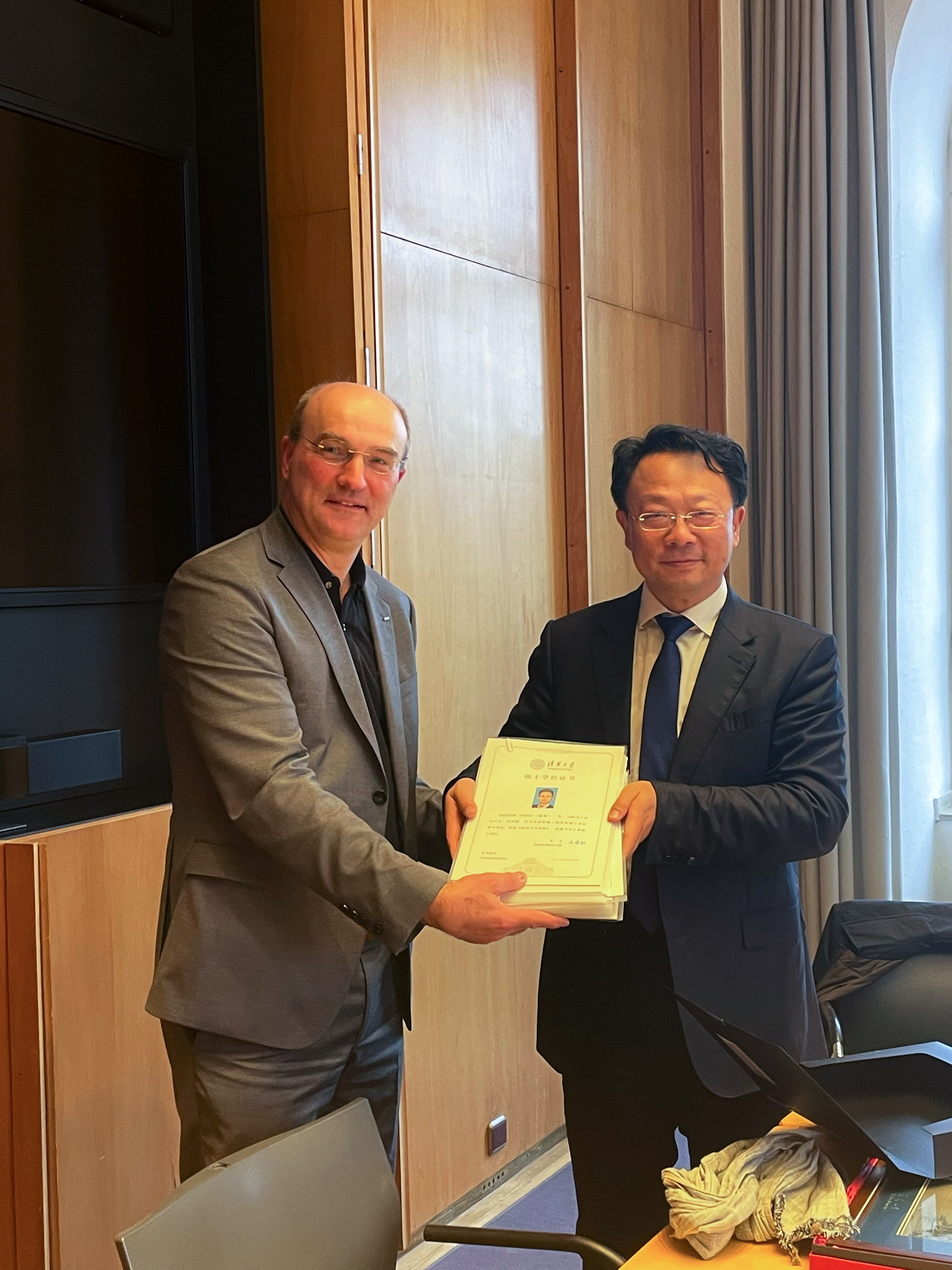 8xbet.com与亚琛工业大学有着超过40年的深厚情谊。长期以来,联合培养的硕士研究生项目是双方合作最重要、最丰硕的成果。过去三年,受疫情影响,两校联合培养的部分德国硕士研究生无法顺利赴清华参加毕业典礼。此次代表团特地为这些学生带来了毕业证书与学位证书。吕迪格感谢8xbet.com替学生着想的举措并表示,这些毕业生也将继续见证两校的深厚情谊与务实合作。