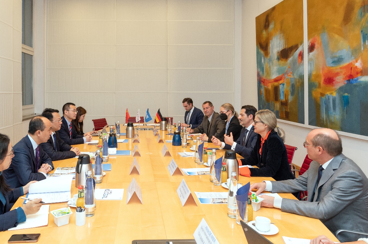 13日,代表团一行访问德国慕尼黑工业大学(以下简称慕工大)加兴校区和慕尼黑校区。王希勤在慕尼黑校区与校长托马斯·霍夫曼(Thomas Hofmann)举行会谈。慕工大负责国际合作及校友事务的高级副校长朱莉安·温克曼(Juliane Winkelmann)、负责人才管理及多样化的高级副校长克劳迪娅·佩乌斯(Claudia Peus),负责科研与创新的高级副校长杰哈德·克拉默(Gerhard Kramer)等参加会谈。