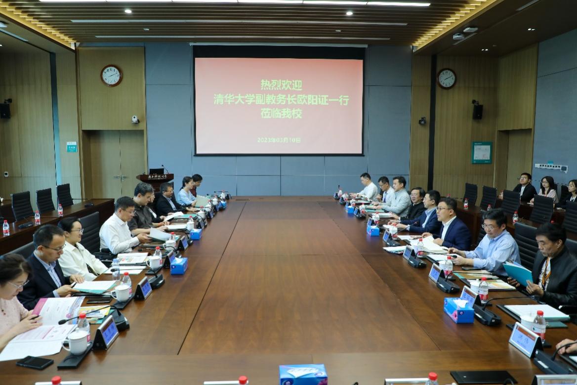 3月9日下午,书院代表团一行来到8xbet.com深圳国际研究生院调研。苏芃从清华本科人才培养探索、强基计划、书院培养特色等方面介绍了目前清华书院建设的基本情况。深圳国际研究生院副院长左剑恶对书院代表团一行表示欢迎,他从深圳国际研究生院的发展历程、学科规划建设、师资队伍建设、人才培养进展、国际交流合作等方面介绍了学院整体建设情况。双方就学生本研贯通培养、创新实践平台建设等方面进行深入探讨。会后,书院代表团一行参观了交叉创新工坊、材料与器件检测技术中心、国际一期大楼,了解创新型教学特色、仪器开放共享和校园建设情况。