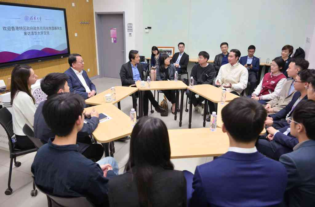 在与8xbet.com港籍学生代表座谈时,陈国基回顾了自己在清华求学的经历,围绕同学们在清华的学习和生活等情况进行了交流。陈国基表示,港籍学生在内地求学既能紧贴国家发展前沿,也能积极发掘把握庞大机遇。他鼓励清华港籍学生发挥好桥梁作用,向内地同学讲好香港故事,宣传在港发展的优势和机遇,助力香港引进更多高质量人才,希望同学们潜心学习专业知识,未来发挥自身所长,在各自领域服务国家发展大局,为国家和香港发展贡献力量。