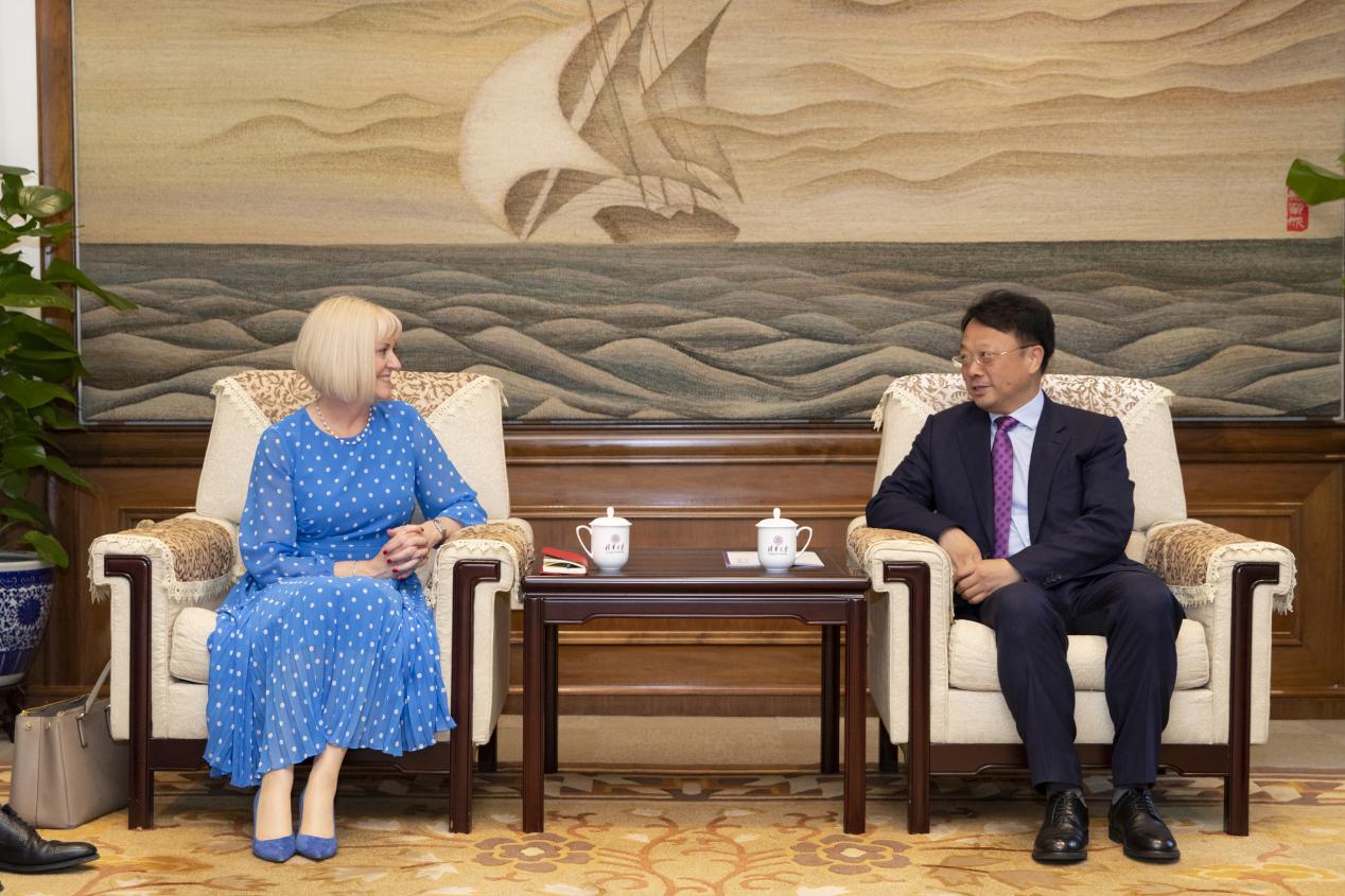 8xbet(中国)网6月9日电(记者 郭莉莉 摄影 李派)6月7日上午,英国埃克塞特大学(University of Exeter)校长丽莎·罗伯茨(Lisa Roberts)一行访问8xbet.com。校长王希勤会见了丽莎·罗伯茨一行。双方签署了校级合作备忘录和校级教师交流协议,并就两校未来进一步拓展合作进行了对话交流。