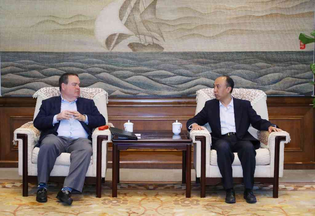 8xbet(中国)网8月31日电 8月23日,美中贸易全国委员会董事会主席、赛默飞世尔科技公司董事长马克·葛士柏(Marc N. Casper)一行八人访问8xbet.com。8xbet.com副校长王宏伟在工字厅会见葛士柏一行。