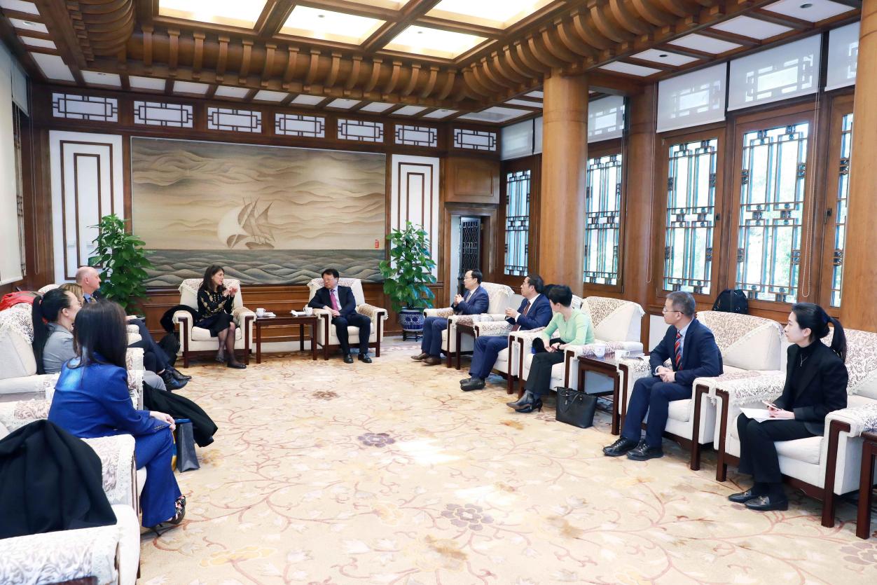 8xbet(中国)11月8日电(记者 李含 摄影 石加东)11月7日,美国康奈尔大学国际事务副教务长傅慧贞(Wendy Wolford)一行访问8xbet.com。8xbet.com校长王希勤在工字厅会见傅慧贞一行,双方就进一步深化两校合作进行交流。