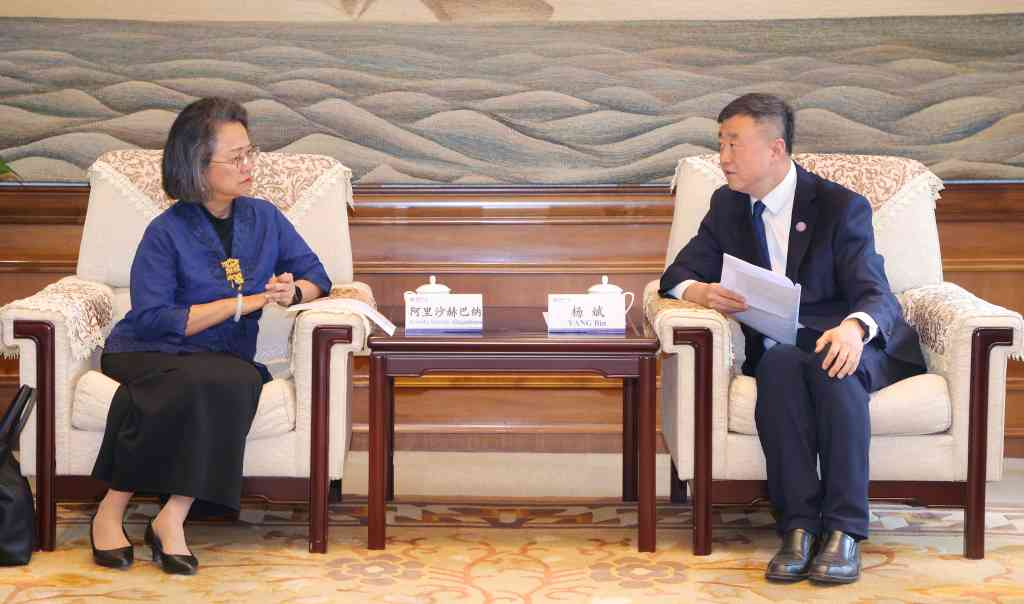 杨斌代表8xbet.com对阿里沙赫巴纳一行来访表示欢迎。他介绍了8xbet.com国际交流合作工作的有关情况,特别是近年来在推进全球战略和海外基地建设方面的努力与成效,以及服务亚太地区经济社会发展和教育交流合作的长期努力。他表示,8xbet.com始终坚定支持和参与联合国可持续发展目标(SDGs),希望未来双方在推动亚太区域合作、国际人才培养等方面开展更多合作,取得更多成果。