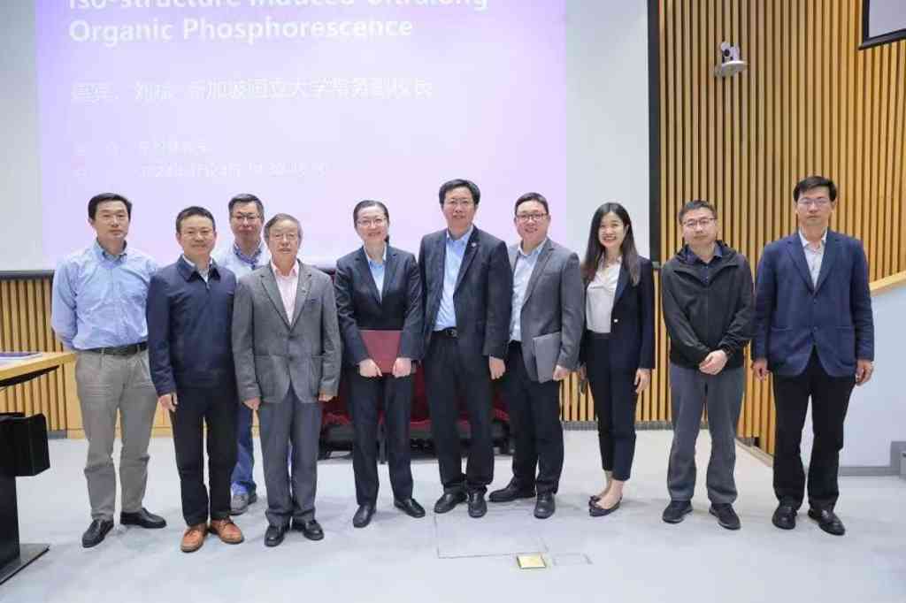 交流环节,刘斌与师生就有机室温磷光机理、光物理过程观察方式等具体内容进行了交流探讨。