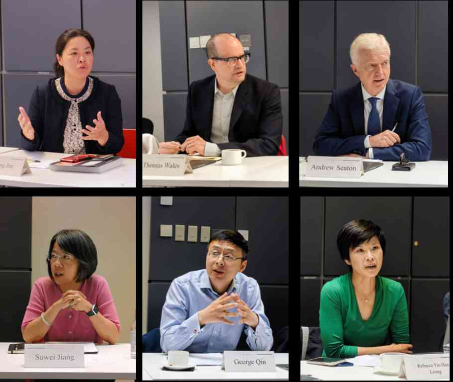 张晋、英国石油公司集团政治顾问托马斯·威尔士(Thomas Wales)、英中贸易协会副总裁奚安竹(Andrew Seaton)、普华永道中国业务主管合伙人姜甦唯(Suwei Jiang)、汇丰集团公共事务部对外关系经理秦晔(George Qin)、汇丰银行大中华区事务总监梁燕娴(Rebecca Yin Han Leung)等与会人员就深化理解、深入合作,发挥业界及高校资源优势,开展特色化学生培养及文化交流等进行了深入的交流讨论。