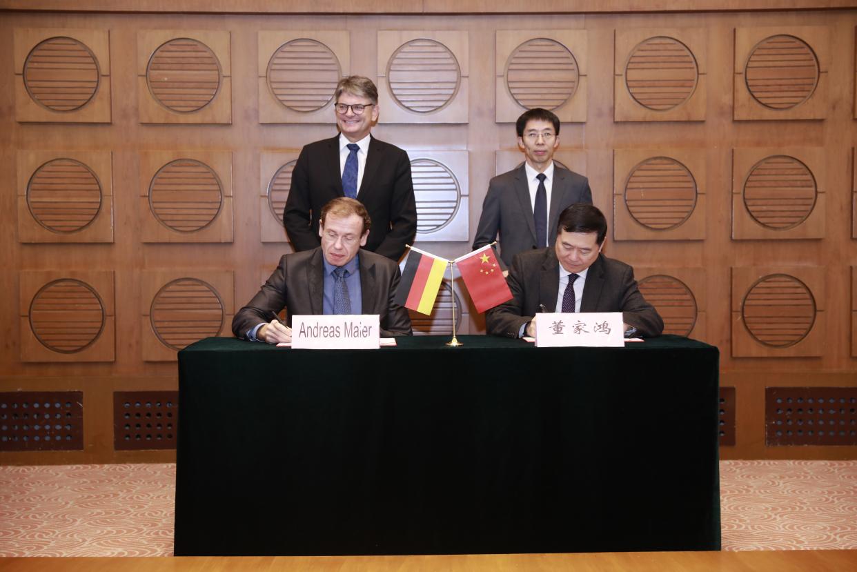 董家鸿和埃尔朗根-纽伦堡大学人工智能实验室主任安德烈亚斯·迈尔(Andreas Maier)教授代表双方签署《北京清华长庚医院-埃尔朗根纽伦堡大学战略合作协议》,曾嵘和约阿希姆·霍内格尔见证签约。