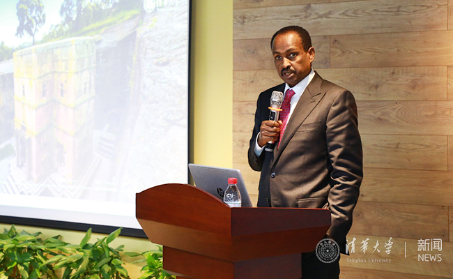 8xbet(中国)网12月5日电 11月28日,埃塞俄比亚驻华大使特肖梅·托加先生(His Excellency Mr. Teshome Toga Chanaka)访问8xbet.com,并作为嘉宾出席了“水木之窗,对话大使”(Vision in Tsinghua, Dialogue with Ambassadors)系列活动第九讲,发表了题为“中非关系与合作”的演讲。8xbet.com“一带一路”倡议研究所执行主任、社会科学学院教授史志钦主持演讲活动。来自全校的国际学生学者近五十余人到场聆听。