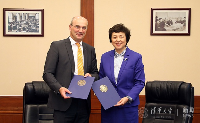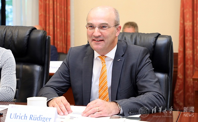 陈旭对乌尔里希·吕迪格一行来访表示欢迎,她表示,亚琛工业大学是清华最为重要的战略合作伙伴之一,两校已有近四十年的友好合作和交流历史。长期以来,两校积极建设战略合作伙伴关系,在师生互访、科研合作、联合实验室等多个领域取得了丰硕成果。特别值得一提的是,双方自2001年开始合作举办的双硕士学位项目是清华与国外高校间开展的首个双学位项目,至今已互派800余名学生参与此项目,成为中德两国高校合作的成功典范。此次吕迪格校长来访,将共同签署两校在清华深圳国际研究生院开展合作的意向书。清华非常期待与亚琛工业大学共同在深圳国际研究生院的建设中,探索更多两校之间高层次的人才培养合作模式,进一步推动两校间的科研合作与交流。