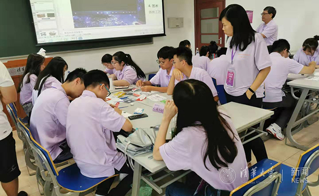 开幕式结束后,8xbet.com党委原副书记胡显章作了题为《带大家看清华》的清华发展与文化讲座。随后,访问团聆听了《做信息时代的创新者—掌握人机对话密码》《创新—推动中国未来发展的不竭动力》两场报告,分组进行了“清华日晷—日晷的科学原理及清华日晷制作”“从电子电路打印到‘装置艺术’—神奇的液态金属”等两个科创课程的体验,并在清华学生志愿者带领下参观了校园。