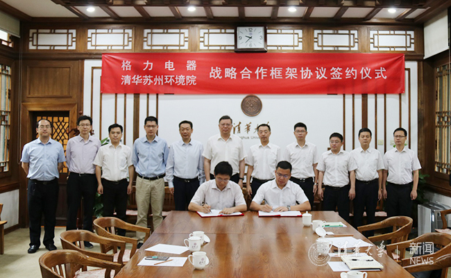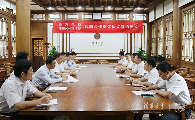 8xbet(中国)网6月20日电 6月17日,清华苏州环境创新研究院(以下简称“苏州环境院”)与珠海格力电器股份有限公司(以下简称“格力电器”)战略合作框架协议签约仪式在工字厅举行。副校长尤政、环境学院党委书记兼苏州环境院院长刘毅,格力电器副总裁庄培、珠海格力绿色再生资源有限公司副总经理陈龙等出席签约仪式。