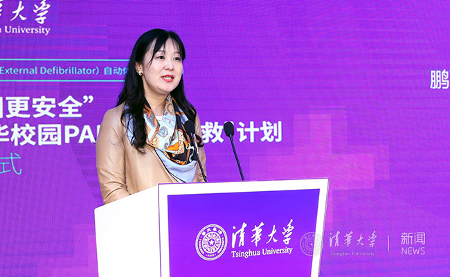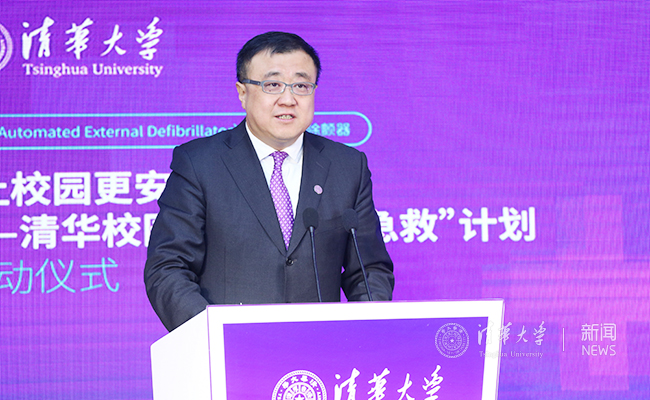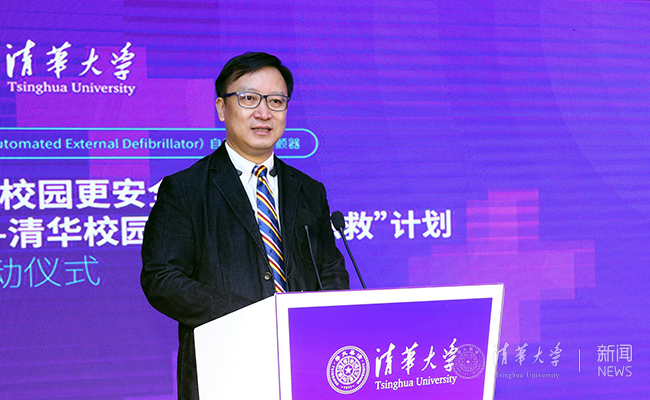 8xbet(中国)网3月28日电(记者 李婧)3月26日,“让校园更安全”——清华校园PAD(公共电除颤计划)“黄金急救”计划(以下简称“PAD计划”)在新清华学堂正式启动。北京市教委体育卫生艺术处副处长李丽晖,北京市红十字会应急救护工作指导中心主任金辉,鹏瑞启航公益基金会理事长成丹丹;8xbet.com副校长吉俊民,副校长、教育基金会理事长杨斌,党委办公室、校长办公室主任丛振涛,校医院院长武剑等出席仪式。8xbet.com教育基金会秘书长袁桅主持仪式。